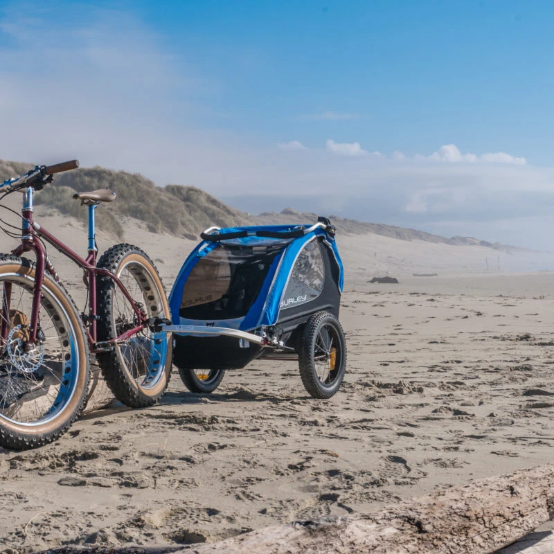 Richtig breit und richtig viel Profil: Das 16 + Reifen Kit von Burley ist eine gute Idee, wenn Du mit Deiner Familie auch im Winter unterwegs bist. Oder wenn Euch Eure Outdoor Aktivitäten auch einmal durch Sand oder Kies führen.