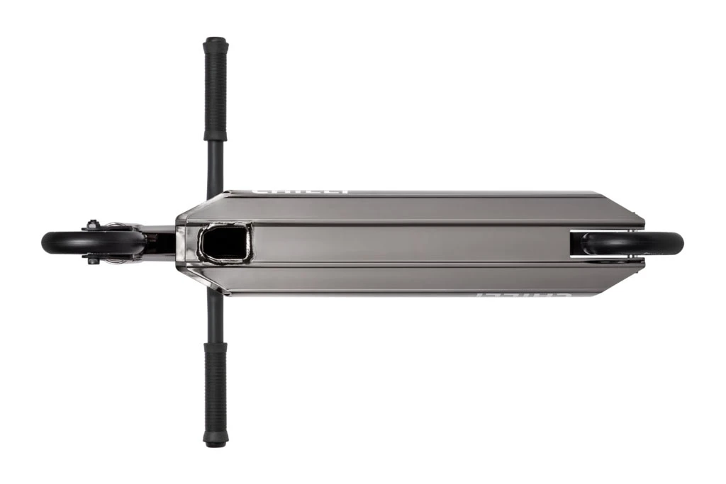 Die robuste T-Bar aus verstĂ€rktem Stahl ist mit einem einzigartigen Honigwaben Pattern bestĂŒckt, das dem Scooter, zusammen mit dem neochromen Deck, einen besonders edlen Look verleiht. Das 50 cm lange und 11.5 cm breite Aluminiumdeck bietet genĂŒgend Platz fĂŒr einen festen Stand. DarĂŒber hinaus verfĂŒgt der Scooter ĂŒber ein universales HIC Kompressionssystem und 110 mm Aluminium Core Wheels mit ABEC 9 Bearings.