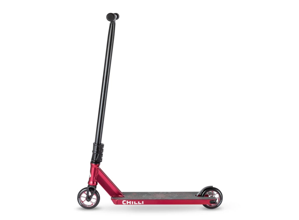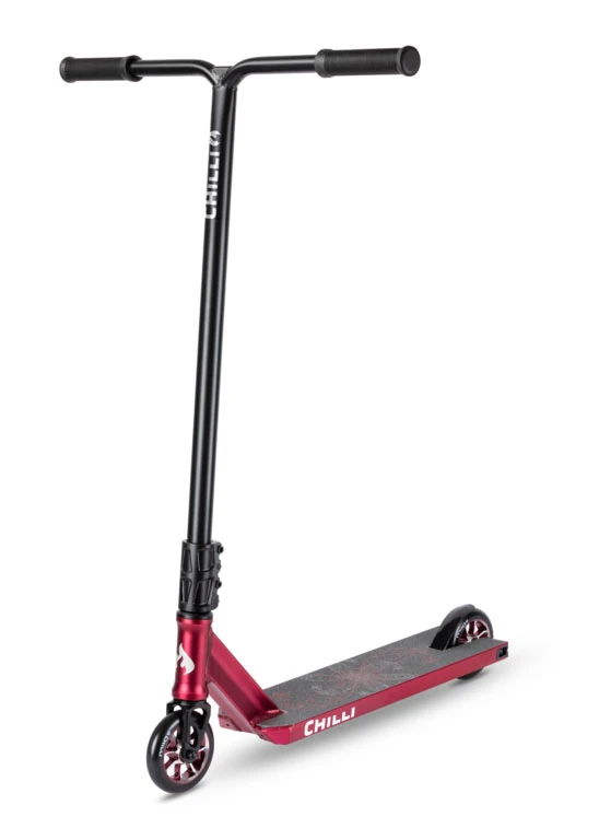 Der TNT ist der erste komplette Chilli Street Scooter Modell mit einem extrabeiten und flachen Aluminiumdeck, perfekt fĂŒr Tricks an Curbs und Rails. Die hohe T-Bar aus Chromoly Stahl eignet sich besonders gut fĂŒr groĂe Rider. AuĂerdem verfĂŒgt der Scooter ĂŒber eine 4-Bolt M8 Clamp mit SCS Kompressionssystem.