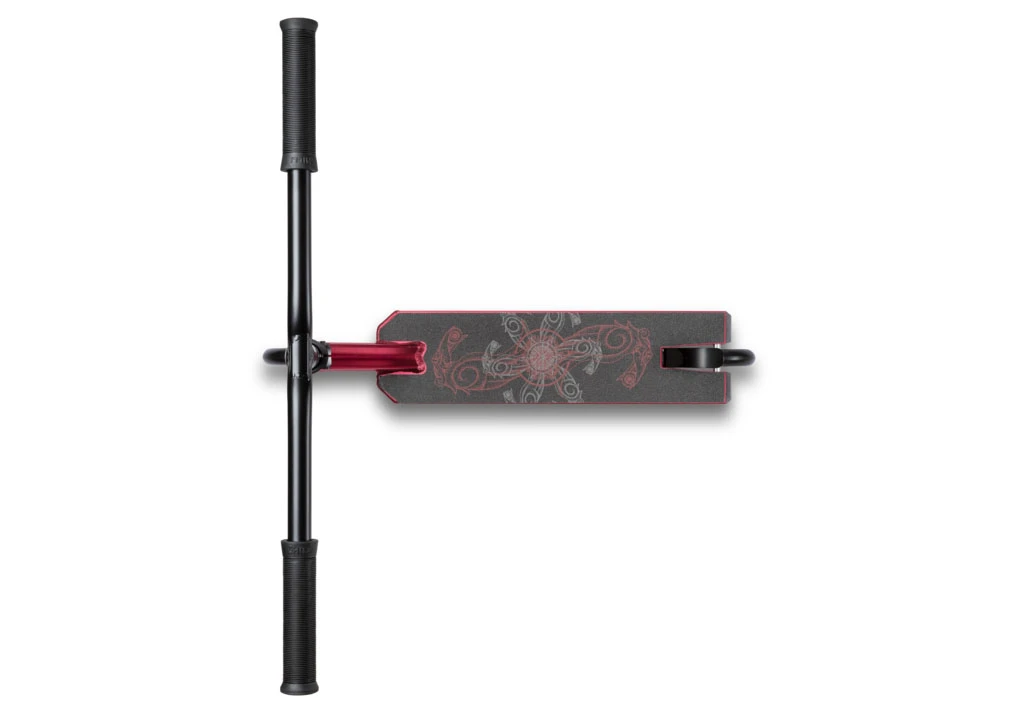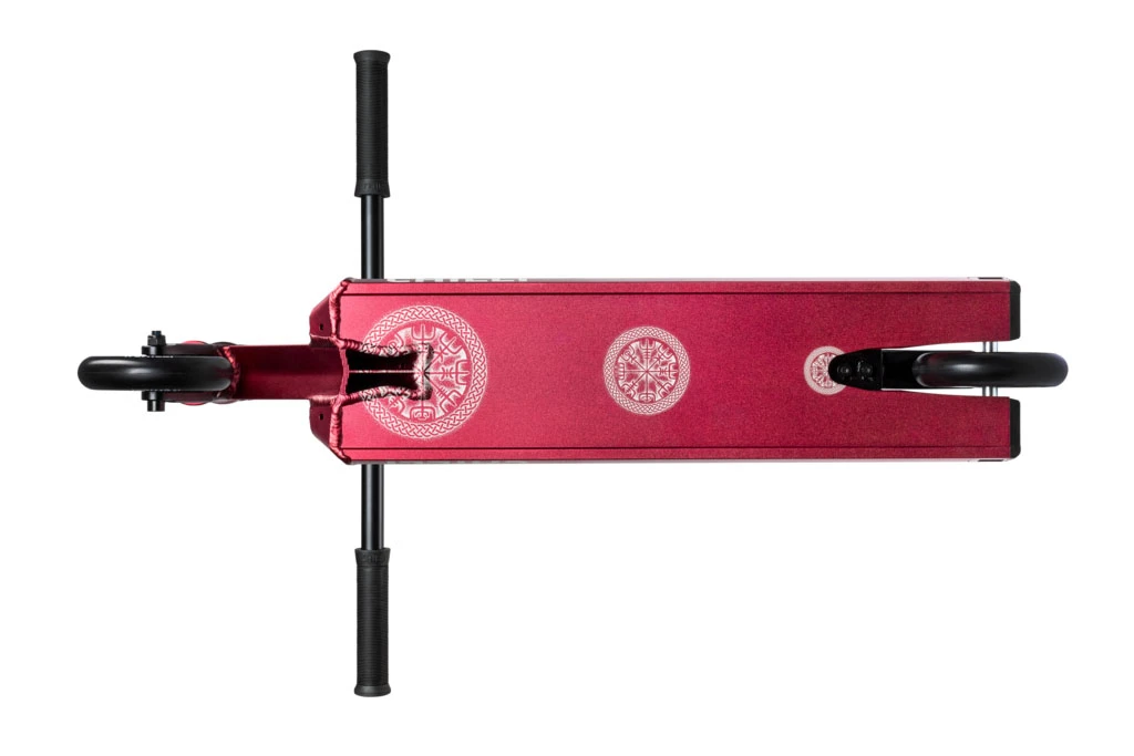 Die zweifarbigen 110mm Spoked Wheels runden das elegante Design perfekt ab. FĂŒr zusĂ€tzliche StabilitĂ€t wurde das Deck hinten mit einer EinlagefĂŒllung ausgestattet. Das traditionelle keltische Design und die gerippte Fork machen den Scooter zu einem besonderen Hingucker.