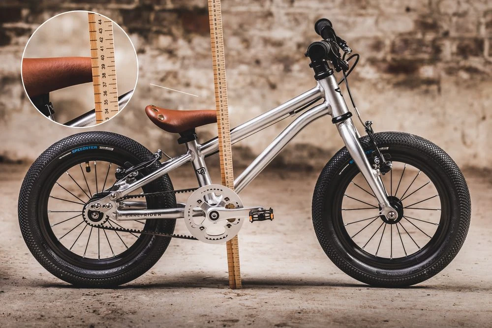 - Innenbein: 36,5 cm (Early Riders dimensionieren ihre Fahrräder nach Innenbein. Diese Messung ist von der Oberseite des inneren Beines bis zur Unterseite der ferse)