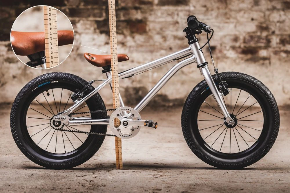 - Innenbein: 45 cm (Early Riders dimensionieren ihre Fahrräder nach Innenbein. Diese Messung ist von der Oberseite des inneren Beines bis zur Unterseite der ferse)
