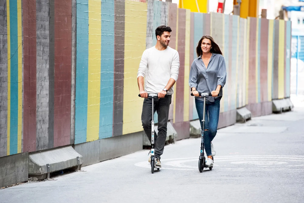 Der micro flex 200 verbindet alle positiven Eigenschaften des micro scooter white, scooter black & flex air. Anstatt der 200 mm Luftreifen, wie beim micro Aluscooter flex air, wurden beim flex 200 mm Hartgummi-Rollen verbaut. Diese haben einen geringeren Rollwiderstand und man erreicht somit eine schnellere Geschwindigkeit, die eine frĂŒhere Ankunft am Zielort garantiert. Trotzdem muss bei diesem Tretroller nicht auf eine komfortable Fahrt verzichten werden, da aufgrund des patentierten flexiblen Decks Unebenheiten absorbiert werden.