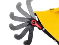 Der neue Stoff kleidet das Verdeck und den Hängesitz und bietet super Vorteile: der Kinderwagen ist etwas leichter, der Stoff ist besonders strapazierfähig, bietet LSF 50+ Schutz und ist reiß- und wasserfest.